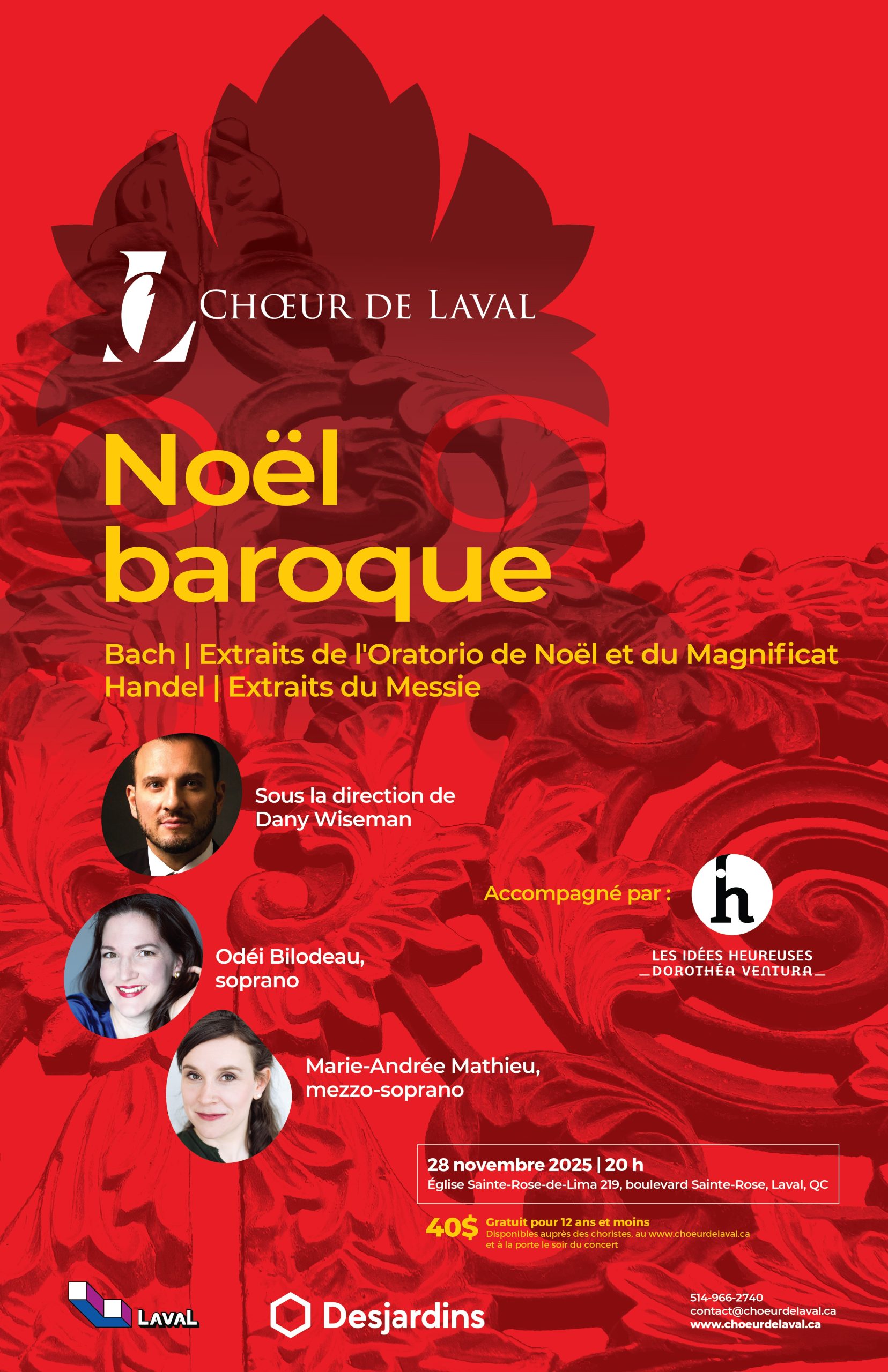 Répertoire : Messie de Haendel, Magnificat de Bach, Oratorio de Noël de Bach,